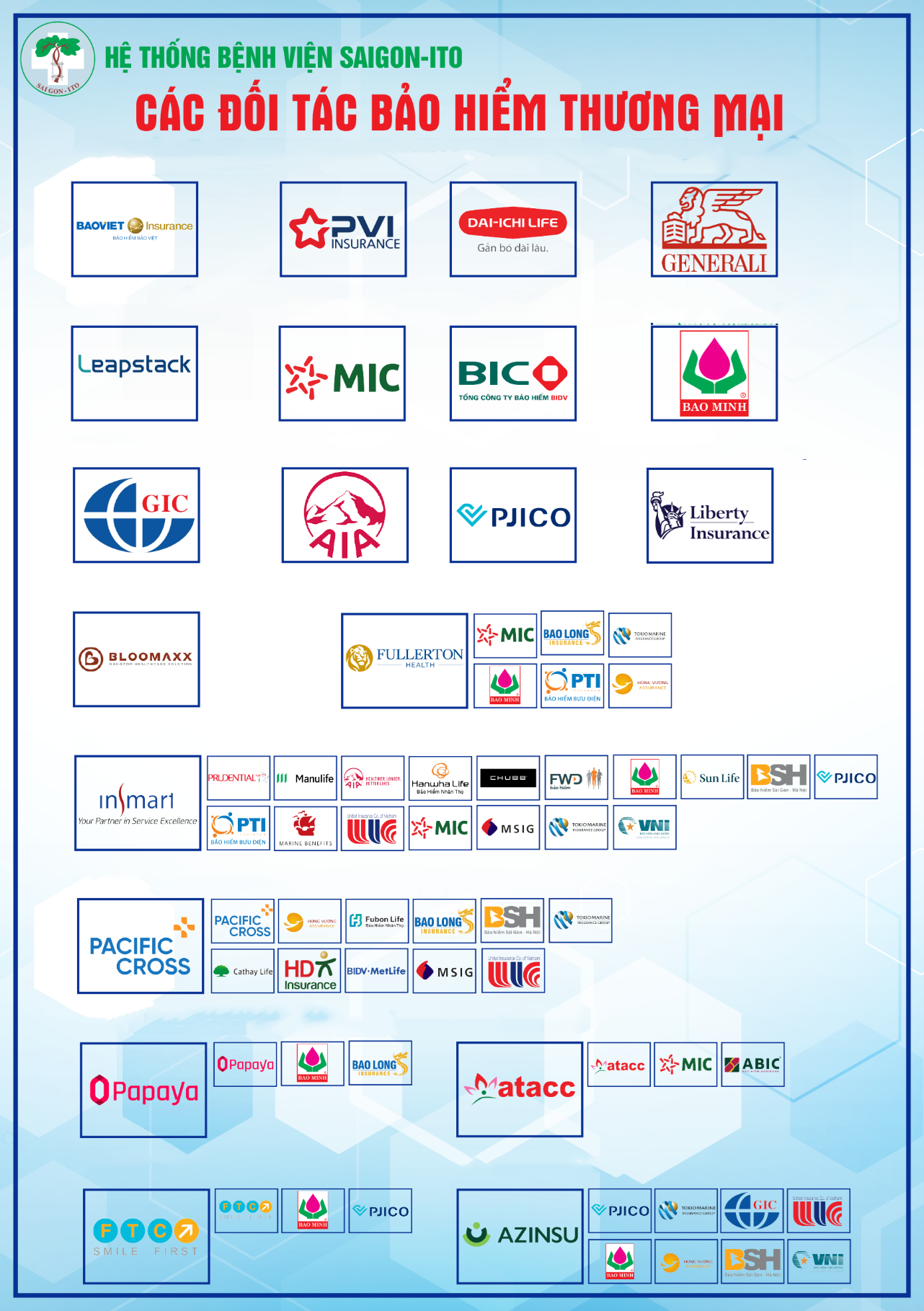 – Hiện tại Hệ thống Bệnh viện SAIGON-ITO đã triển khai hình thức khám chữa bệnh bảo lãnh viện phí, chúng tôi tiếp nhận khám chữa bệnh cho các khách hàng có thẻ bảo hiểm của các công ty bảo hiểm sau: