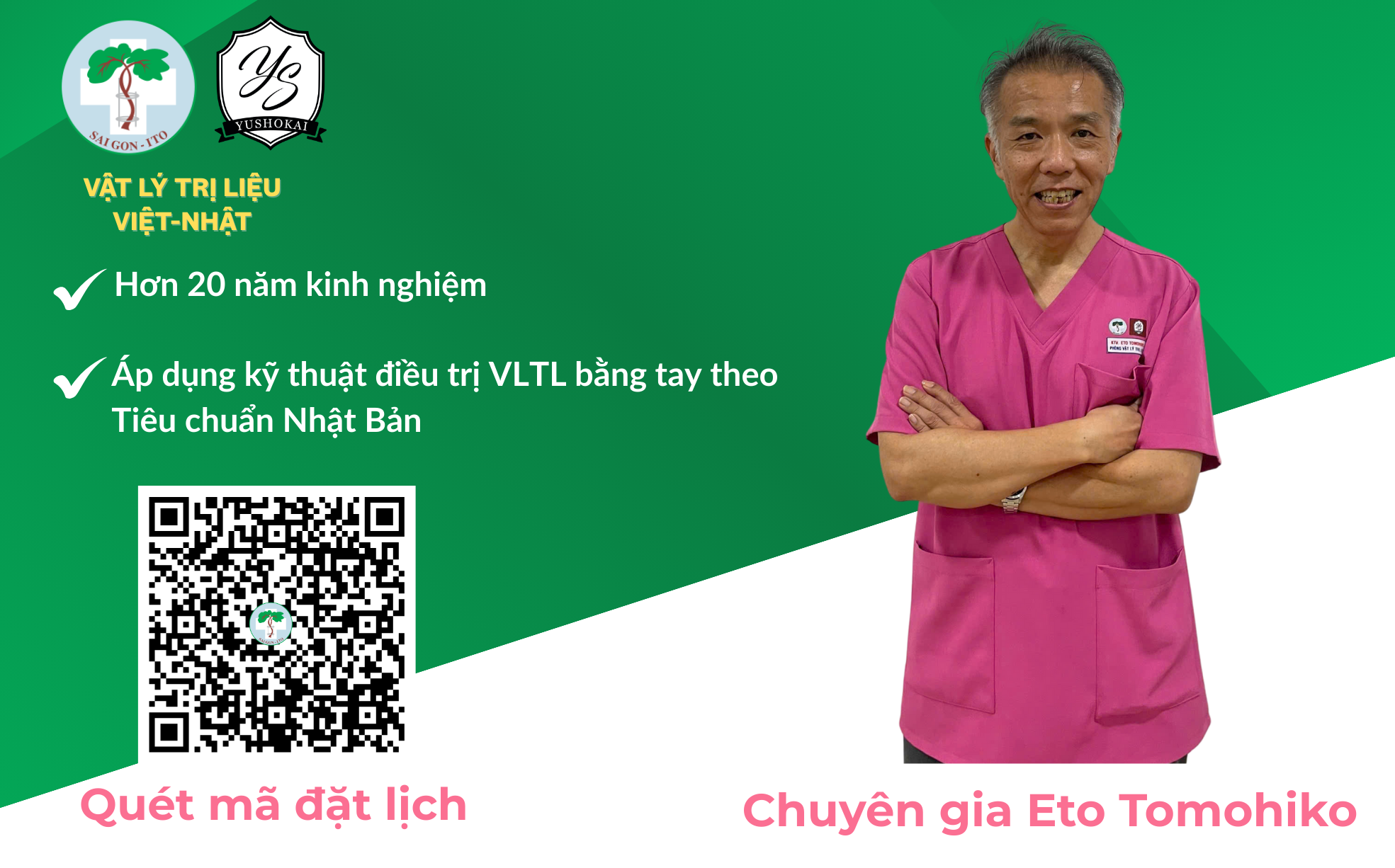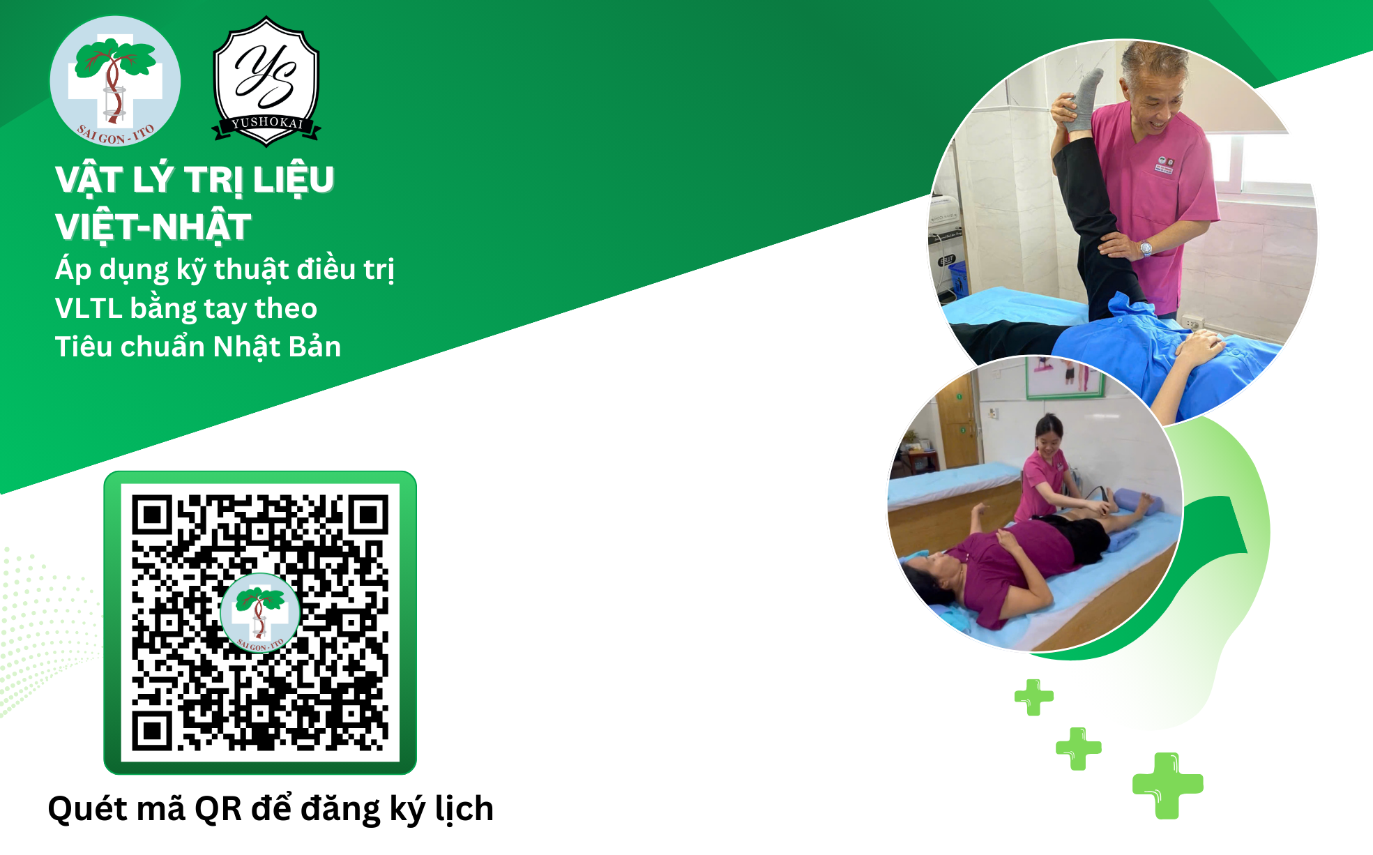 Điểm nổi bật của Đơn vị là kỹ thuật điều trị vật lý trị liệu bằng tay được áp dụng theo tiêu chuẩn Nhật Bản, được thực hiện bởi đội ngũ chuyên viên vật lý trị liệu giàu kinh nghiệm, được đào tạo trực tiếp từ các chuyên gia Nhật Bản thuộc Tập đoàn Yushokai.