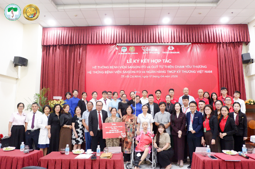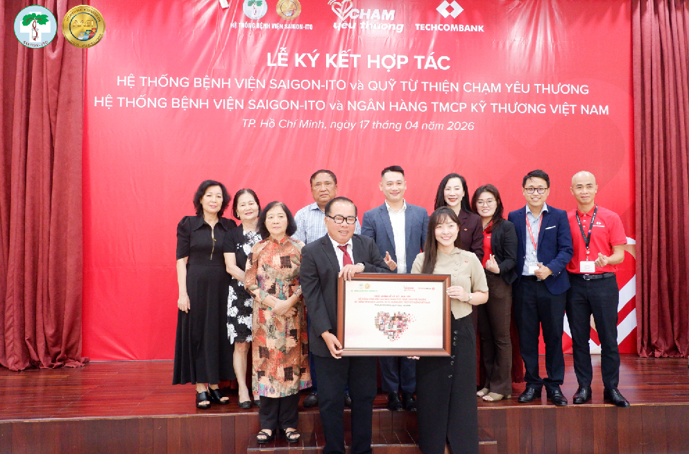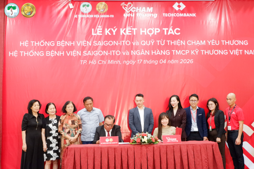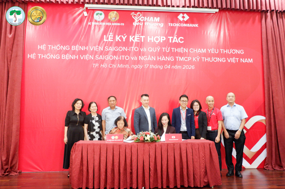 Vào lúc 10h00 ngày 17/04/2026, Hệ thống Bệnh viện SAIGON-ITO tổ chức Lễ ký kết hợp tác toàn diện với Ngân hàng TMCP Kỹ Thương Việt Nam (Techcombank) và Hệ thống Bệnh viện SAIGON-ITO ký kết hợp tác với Quỹ từ thiện Chạm Yêu Thương, đánh dấu bước tiến quan trọng trong việc nâng cao chất lượng dịch vụ y tế, đồng thời lan tỏa các giá trị nhân văn đến cộng đồng.